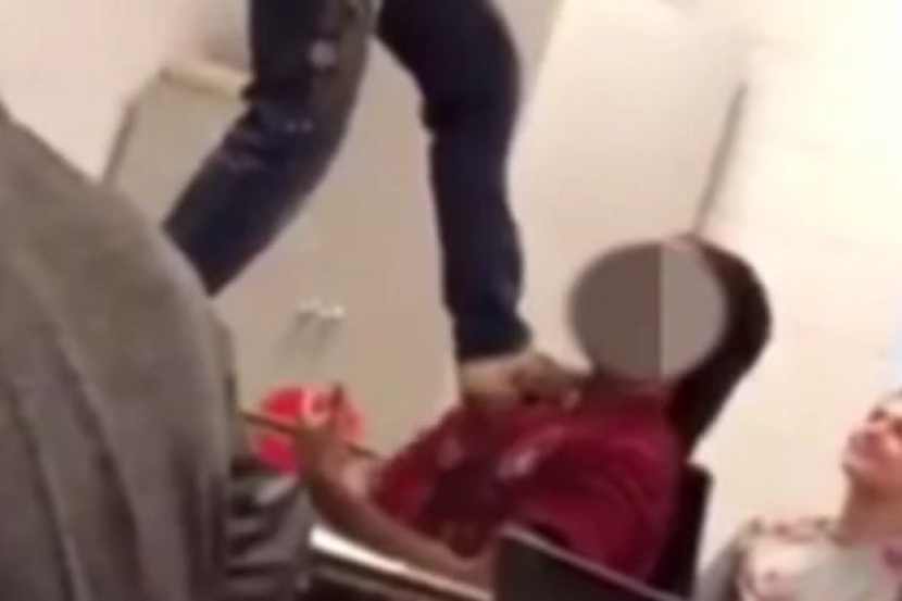 RAKAMAN mengejutkan muncul menunjukkan seorang guru berdiri di atas meja dan kemudian menampar serta menarik rambut seorang pelajar yang sedang tidur.