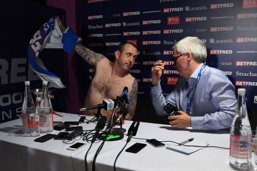 Pemain profesional snuker itu sebelum ini bergurau semasa menewaskan pencabar Robert Milkin pada pusingan kedua.
