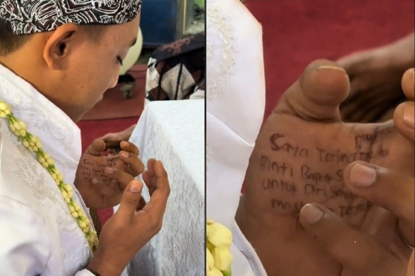 Begitulah kisahnya apabila seorang lelaki bertindak menulis lafaz akad nikah pada tapak tangan sebagai tempat rujukan, bimbang tersasul ekoran daripada rasa gugup.