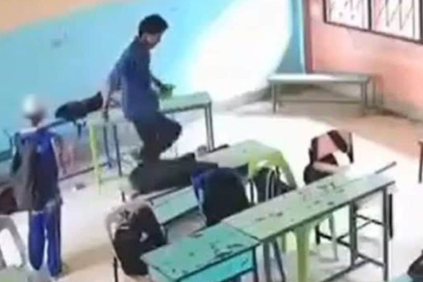 Rakaman yang tular itu memaparkan seorang lelaki dewasa mengugut seorang pelajar dengan pistol dan menyerangnya di dalam kelas, di hadapan beberapa pelajar lain.