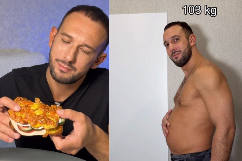 Selepas sebulan, berat badannya meningkat 13kg sehingga mencecah 105kg.