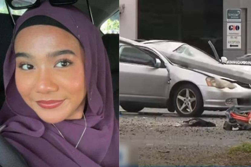 Gadis berusia 21 tahun itu maut selepas kereta yang dipandunya dihempap tiang yang tumbang akibat dirempuh sebuah treler terbalik.