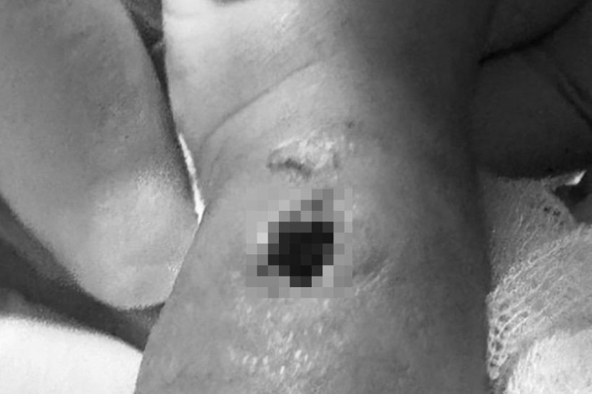 Foto tular memaparkan kesan hirisan (lubang) hasil pembedahan kecil untuk membuang nanah dan tisu mati pada lengan bayi. -Foto Istimewa/Detik