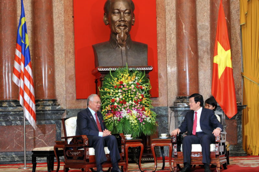 Perdana Menteri, Datuk Seri Najib Tun Razak ketika membuat kunjungan hormat ke atas Presiden Vietnam, Truong Tan San (kanan) di Istana Presiden di Hanoi, Jumaat. -fotoBERNAMA