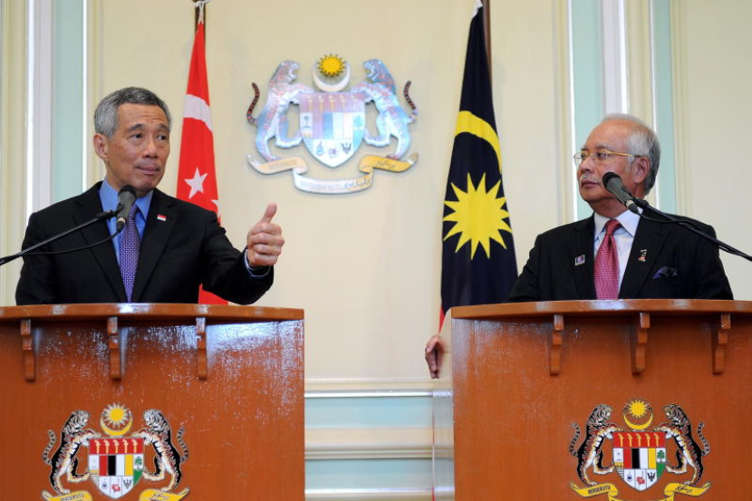 Perdana Menteri Datuk Seri Najib Tun Razak bersama rakan sejawatnya dari Singapura, Lee Hsien Loong ketika mengadakan sidang media bersama di Putrajaya pada Isnin sempena Pemukiman Pemimpin Malaysia-Singapura kelima. -fotoBERNAMA
