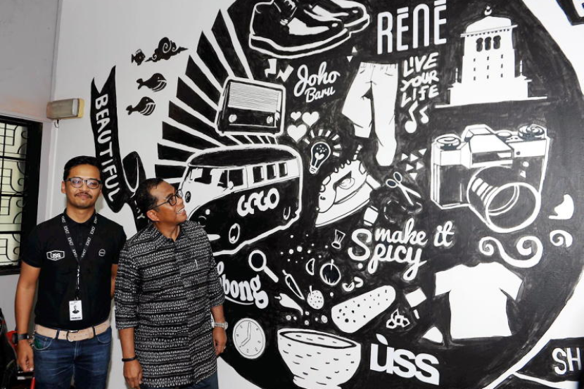 Mohamed Khaled Nordin (kanan) ketika melawat ruang dalaman pejabat Usaha Selasih Selayang (USS) Sdn Bhd (JOHOR HQ) selepas merasmikan pembukaannya di Stulang Laut, Johor Baru pada Ahad. -fotoBERNAMA