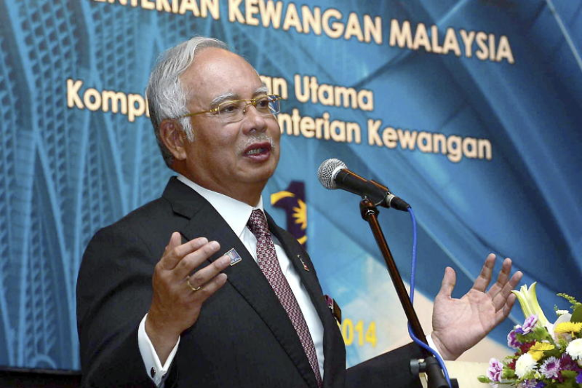 Perdana Menteri yang juga Menteri Kewangan, Datuk Seri Najib Tun Razak ketika menyampaikan amanat kepada warga kerja Kementerian Kewangan pada Perhimpunan Bulanan Khas Kementerian Kewangan di sini, Selasa. -fotoBERNAMA