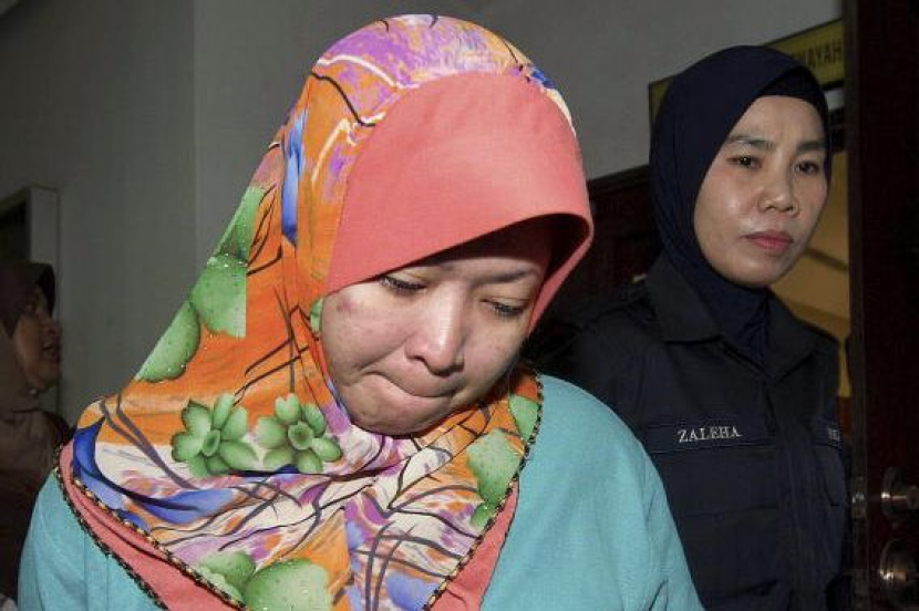 Seorang anggota polis membawa keluar seorang penganggur, Zahidah Ahmad, 27, yang dijatuhi hukum gantung sampai mati setelah disabitkan kesalahan sengaja menyebabkan kematian ibu tirinya, seorang guru agama, Tanziah Zainuddin, 72, dengan menekup muka mangsa menggunakan bantal pada dua tahun lepas di Mahkamah Tinggi Shah Alam di sini, Selasa. -fotoBERNAMA
