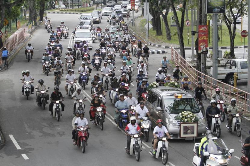 Kira-kira 100 penunggang Superbike mengiringi kereta yang membawa keranda mendiang Karpal Singh ke Dewan Sri Pinag. Foto CHAN BOON KAI