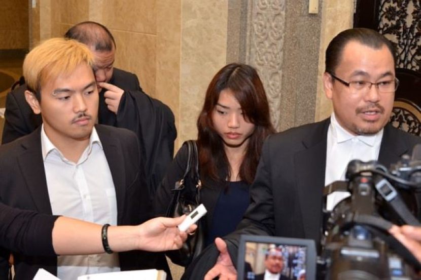 Pasangan penulis blog seks, Alvin Tan (kiri) dan Vivian Lee (tengah) bersama peguam mereka, J. T Chong ketika bercakap kepada para pemberita selepas menghadiri Mahkamah Rayuan di Putrajaya.