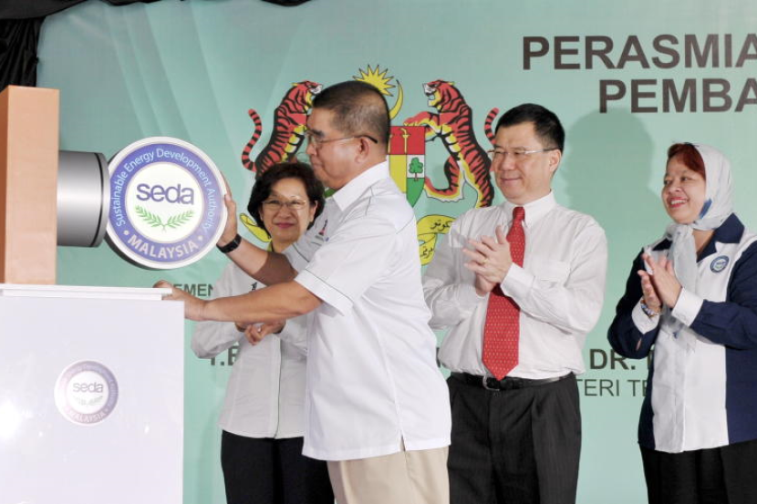 Menteri Tenaga, Teknologi Hijau dan Air, Datuk Seri Maximus Ongkili merasmikan Pejabat Pihak Berkuasa Pembangunan Tenaga Lestari Malaysia Cawangan Sabah (SEDA) cawangan Sabah pada Selasa. Turut sama Pengerusi SEDA Malaysia Datuk Dr. Yee Moh Chai (dua, kanan). -fotoBERNAMA
