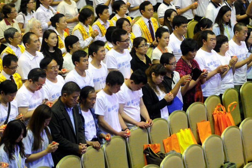 Sebahagian daripada keluarga penumpang pesawat MH370 dari China menyertai upacara keagamaan bagi memperingati pesawat MH370 di Wisma MCA, Kuala Lumpur pada 6 April lalu.-fotoBERNAMA