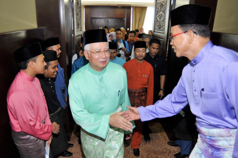Najib (tengah) disambut mesra oleh tetamu yang hadir pada majls taklimat pembangunan negeri di Bilik Gerakan Wisma Darul Aman di Alor Setar pada Khamis. - fotoBERNAMA