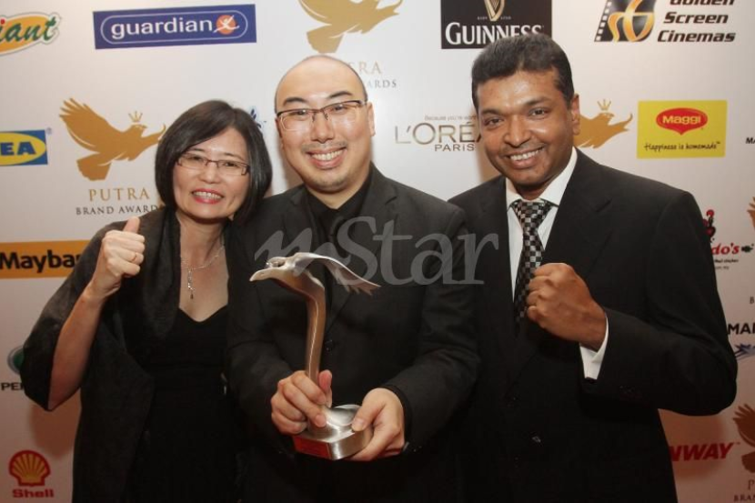 (Dari kiri) Ketua Pegawai Pengiklanan Star Publications (Malaysia) Bhd, Lim Bee Leng, Pengurus Besar Perniagaan Digital, Roy Tan, dan Editor Kanan Metro, Brian Martin, bersama Anugerah Perak yang dimenangi The Star bagi kategori Media pada Anugerah Jenama Putra di Kuala Lumpur, Jumaat malam. Foto FAIHAN GHANI