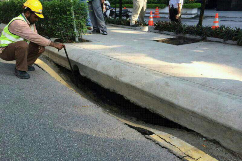 Seorang pekerja memeriksa keadaan jalan yang mendap di Jalan Bukit Bintang, Kuala Lumpur. Foto BERNAMA