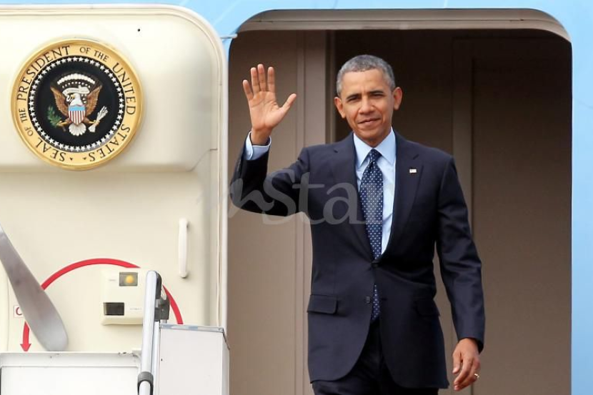 SUBANG: Dengan lambaian tangan kanan dan mengukir senyuman mesra seperti kebiasaannya, Presiden Amerika Syarikat, Barack Obama berjalan keluar dari pesawat Air Force One untuk memulakan lawatan bersejarah ke Malaysia. Adegan beliau melambaikan "hello" di tangga pesawat presiden itu banyak kali dipertontonkan di televisyen sejak beliau mengambil alih jawatan itu pada 2009, tetapi kali ini Presiden Amerika Syarikat ke-44 itu berada di sini. Pesawat Boeing 747- 200B mendarat kira-kira pukul 5 petang dalam keadaan cuaca baik dan suhu sejuk berikutan hujan sebelum itu. Sejurus selepas itu, kenderaan Cadillac One yang dikenali sebagai The Beast bersedia di sebelah pesawat. Kemudiannya, detik bersejarah negara yang dinanti-nantikan sejak 48 tahun apabila menyaksikan ketibaan Presiden Amerika Syarikat. Obama berkarisma yang berpakaian rapi dengan sut biru gelap kelihatan tenang walaupun sibuk dengan kunjungannya ke Tokyo dan Seoul, menuruni anak tangga pesawat. Menteri Luar, Datuk Seri Anifah Aman adalah yang pertama yang mengucapkan selamat datang kepada Presiden Obama, diikuti oleh Menteri Belia dan Sukan, Khairy Jamaluddin yang bertindak sebagai menteri pengiring bagi ketibaan presiden itu. Presiden itu dilihat memberikan kata-kata kepada orang-orang yang menegurnya, tersenyum dan juga memberikan tepukan di bahu sebagai tanda mesra. Obama mengetahui ramai lagi yang menantikan beliau, selama empat jam, termasuk sebahagian besar media. Beliau tersenyum dan melambai kepada mereka sebelum diiringi Khairy untuk menaiki kenderaan The Beast. Penasihat Keselamatan Negara AS, Susan Rice menyertai beliau dalam perjalanan ke Parlimen untuk majlis sambutan rasmi. Protokol keselamatan amat ketat untuk ketibaan presiden itu, di mana para wartawan perlu menjalani tiga tahap pemeriksaan identiti. Ketibaan presiden disiarkan secara langsung oleh rangkaian stesen telebisten tempatan. Lyndon B. Johnson merupakan Presiden Amerika Syarikat yang pertama melawat Malaysia sejak 1966.