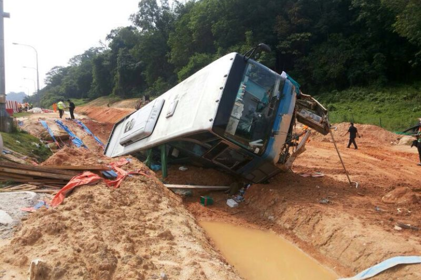 PETALING JAYA: Lima pelajar Universiti Islam Antarabangsa Malaysia (UIAM) cedera parah, selepas bas yang dinaiki mereka terbabas di Kilometer 25.2 Lebuh Raya Utara Selatan (PLUS), di Kuala Lumpur, kira-kira pukul 9.30 pagi Ahad. Menurut sumber, bas yang membawa 31 orang termasuk pemandu itu dalam perjalanan menuju ke Bukit Cherakah, Shah Alam. "Menurut saksi, bas berkenaan hilang kawalan lalu terbabas di bahagian kiri lebuh raya dan melanggar penghadang pembinaan sebelum terbabas ke tapak pembesaran jalan. "Seramai lima pelajar UIAM parah terdiri daripada empat pelajar lelaki dan seorang pelajar perempuan," katanya. Keadaan bas yang terbalik sehingga mengakibatkan lima pelajar UIAM cedera parah. Sumber itu berkata, operasi menyelamat melibatkan Jabatan Bomba dan Penyelamat Hartamas dan Jalan Hang Tuah pada pukul 9.40 pagi. Menurut sumber lagi, pemandu bas yang membawa 30 pelajar UIAM itu ada mengadu kurang sihat sebelum memulakan perjalanan. Anggota Jabatan Bomba dan Penyelamat menyelamatkan penumpang bas yang terlibat dalam kemalangan. Mengenai mangsa yang cedera parah, katanya, seorang pelajar lelaki dihantar ke Hospital Besar Kuala Lumpur manakala empat lagi serta mereka yang cedera ringan dihantar ke Hospital Sungai Buloh. "Pemandu bas dibawa ke klinik di UIAM untuk diberikan rawatan," kata sumber.