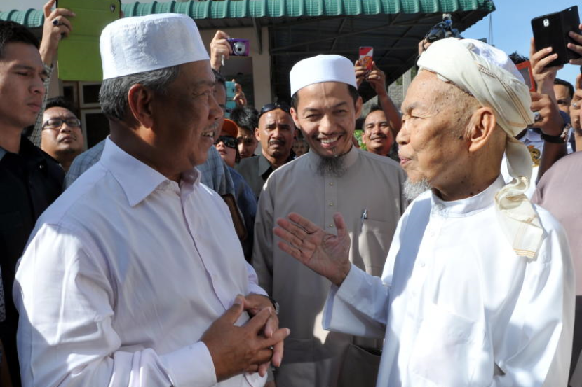 Timbalan Perdana Menteri Tan Sri Muhyiddin Yassin (kiri) beramah mesra dengan Datuk Nik Abdul Aziz Nik Mat (kanan) ketika menziarahinya di kediaman bekas Menteri Besar Kelantan itu di Pulau Melaka, Kota Baharu pada Ahad. -Foto BERNAMA