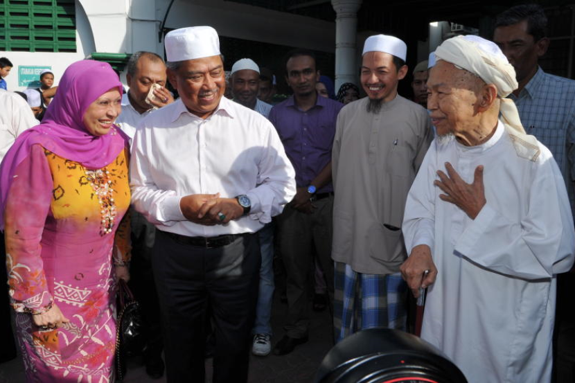 Timbalan Perdana Menteri Tan Sri Muhyiddin Yassin (kiri) beramah mesra dengan Datuk Nik Abdul Aziz Nik Mat (kanan) ketika menziarahinya di kediaman bekas Menteri Besar Kelantan itu di Pulau Melaka baru-baru ini.