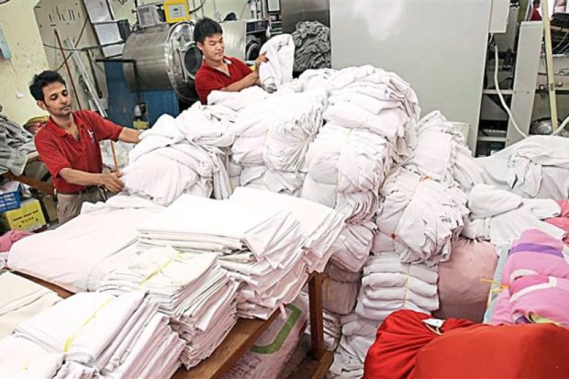 Pekerja di Lady Lily Laundry & Dry-Cleaning di Aman Suria, Petaling Jaya, terpaksa menangguhkan perkhidmatan cucian cadar tilam dan alas meja kerana masalah gangguan bekalan air.