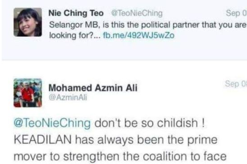 Azmin kemudian menggelar Teo Nie Ching bersifat 'kebudak-budakan' di laman sosial Twitter sebelum wanita itu membalasnya di Facebook.