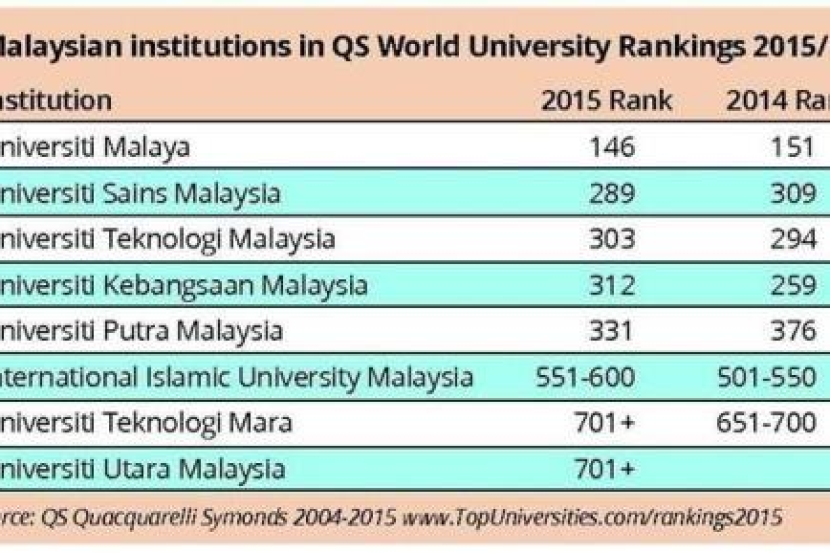 Senarai terbaharu itu dikeluarkan QS World University Ranking bagi tahun 2015/16.