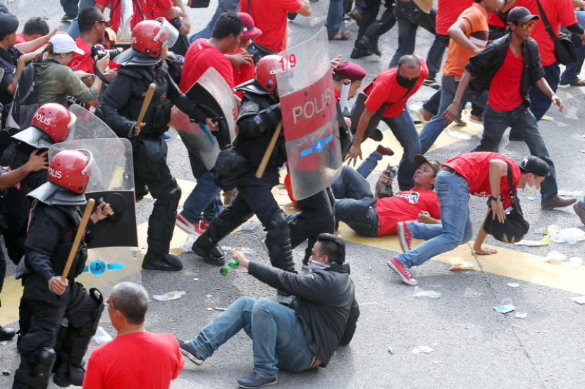 Dilaporkan, sekumpulan peserta perhimpunan 'baju merah' di Jalan Petaling didakwa melakukan provokasi dan masih enggan berundur walaupun Pasukan Polis Simpanan Persekutuan (FRU) melepaskan pancutan air ke arah mereka, manakala di Bukit Bintang pula kumpulan sama dikatakan merempuh sekatan selepas dihalang memasuki kawasan berkenaan.