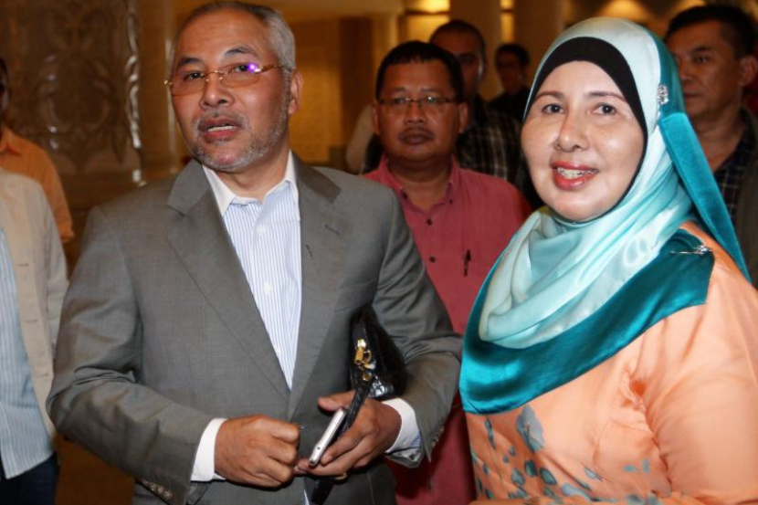 Bekas Menteri Besar Selangor Dr Muhamad Khir Toyo (kiri) bersama isterinya Zahrah Kechik ketika hadir di Mahkamah Persekutuan Putrajaya bagi mendengar prosiding rayuan akhir kesnya di Istana Kehakiman, Selasa. -foto THE STAR