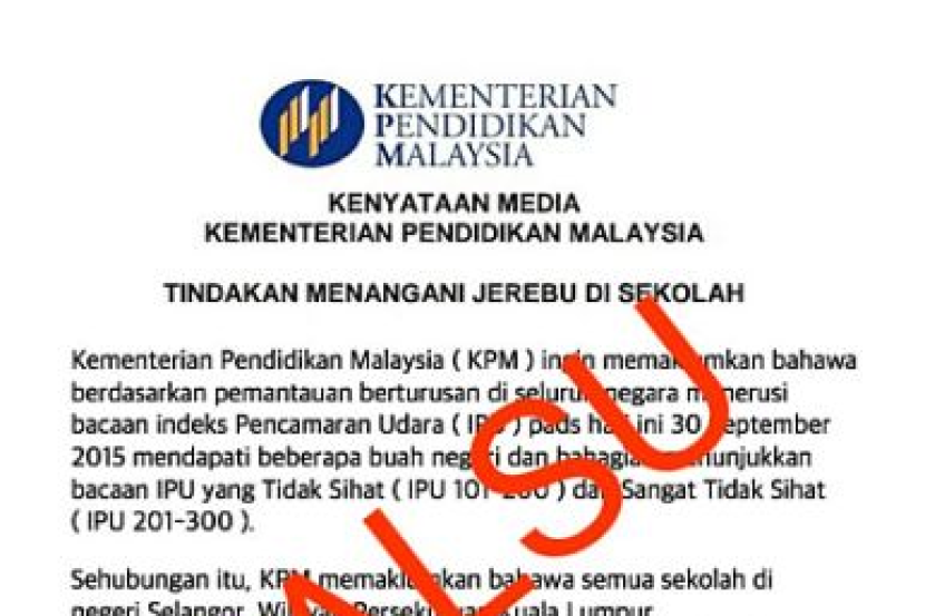 Kementerian Pendidikan menerusi satu kenyataan pada Rabu berkata edaran kenyataan media palsu itu dilakukan oleh pihak tidak bertanggungjawab.