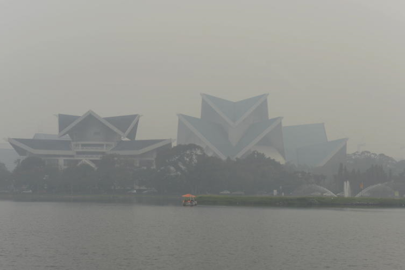 Bangunan Istana Budaya hampir tidak kelihatan dari Taman Tasik Titiwangsa akibat jerebu dengan jarak ketampakan amat terbatas pada Sabtu. Foto Bernama