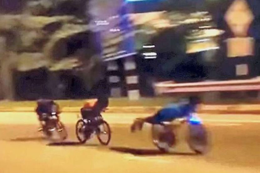 Bilangan mereka sekurang-kurangnya 30 orang, dirakamkan oleh beberapa pengguna jalan raya dekat lampu isyarat selepas salah seorang daripada mereka berdiri di atas basikal yang sedang bergerak.