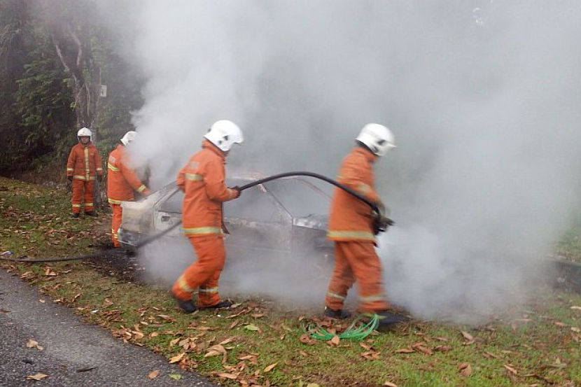 "Orang ramai yang berada di tempat kejadian menghubungi polis serta bomba bagi memadamkan api. Namun, apabila tiba api sudah marak dengan pemandu dan penumpang belakang rentung dalam kereta tersebut," katanya dalam satu kenyataan di sini, Isnin.
