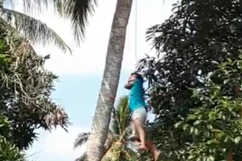 Zulhisyam tergantung akibat tersalah teknik ketika memotong tandan kelapa muda di kampungnya pada Khamis