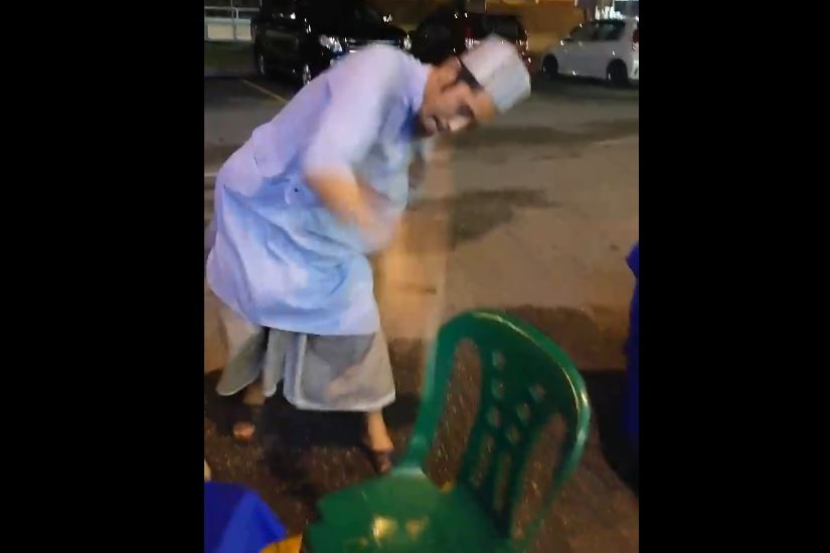 Aksi 'Abang Kopiah' membaling bebola nasi bagi membuktikan tuduhan beras plastik itu adalah palsu. - Facebook/Azmircuit Rajalawak6
