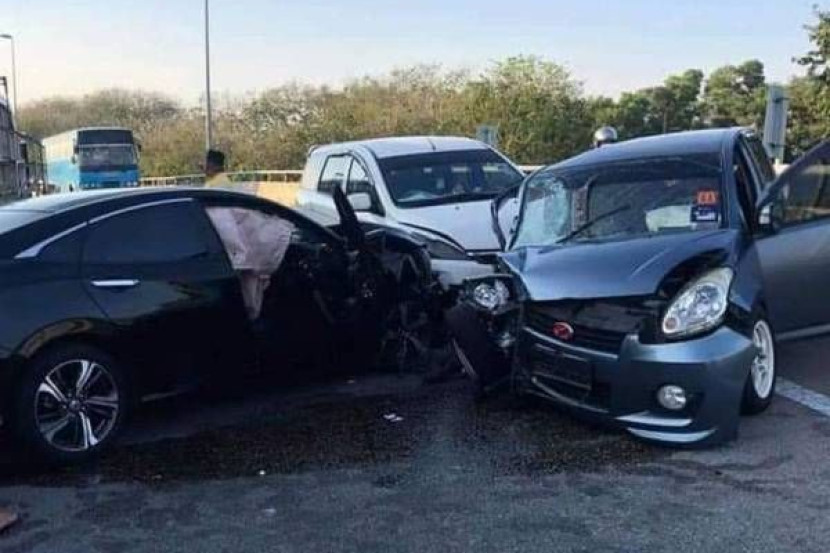Tindakan seorang wanita memandu kereta melawan arus menyebabkan kemalangan dengan tiga buah kenderaan lain. - (Kredit pembaca)/ Sinar Harian