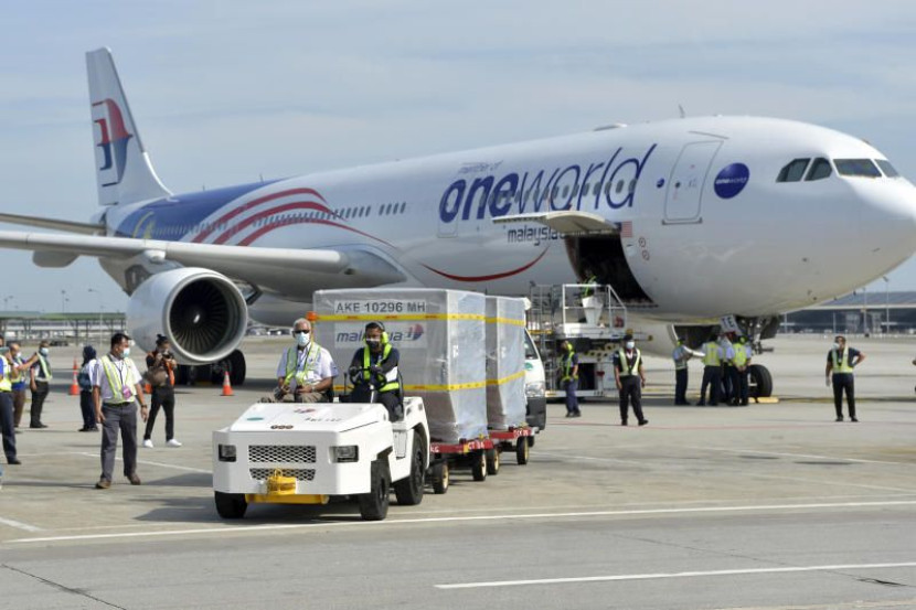 Kumpulan pertama vaksin Covid-19 Pfizer-BioNTech tiba di KLIA, pagi Ahad melalui penerbangan MH604. foto Bernama