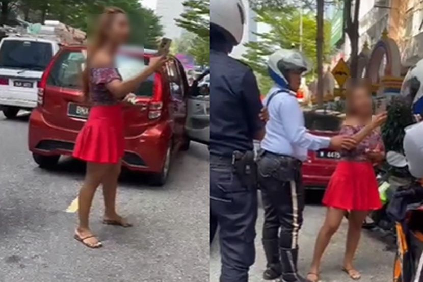 Tangkap layar memaparkan seorang model mengamuk apabila dikenakan saman kerana kesalahan ketika memandu.
