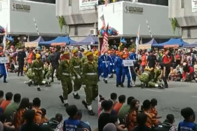 Menerusi video tular, beberapa anggota Rela dilihat keluar daripada barisan kawad untuk membantu mangsa yang tiba-tiba rebah di atas jalan raya.