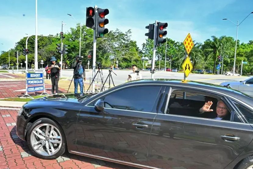 Beliau yang tiba kira-kira pukul 9.45 pagi dengan menaiki sebuah kereta hitam dilihat melambai petugas media yang menunggu di pintu masuk.