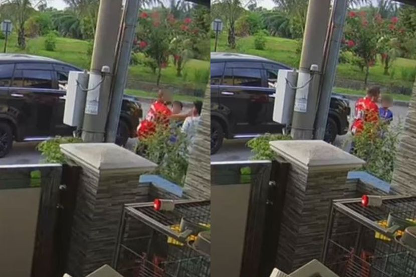 Menerusi rakaman kamera litar tertutup (CCTV) dari sebuah rumah, menunjukkan seorang lelaki didakwa memukul dua budak di luar kediaman jiran.