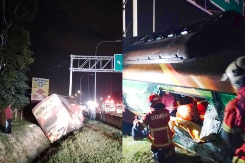 Jelasnya, 17 penumpang dan seorang pemandu bas mengalami kecederaan dan menerima rawatan awal daripada pasukan perubatan kecemasan di lokasi kejadian.