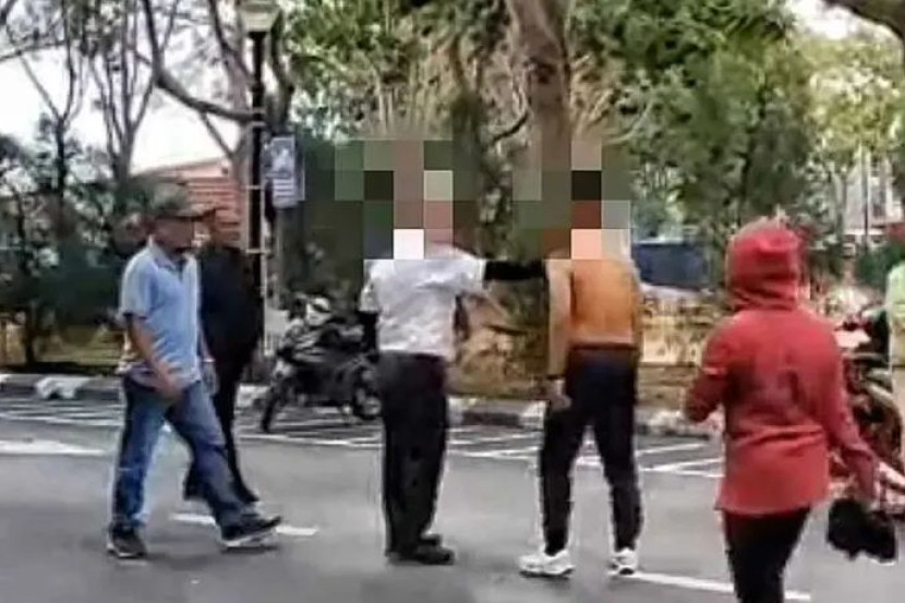 Kejadian kira-kira pukul 3.20 petang itu tular di media sosial selepas rakaman pertengkaran mereka di kawasan masjid dimuat naik dan dikongsi oleh orang ramai.