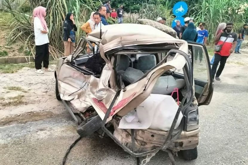 "Perodua Kancil itu kemudian berhenti untuk membelok ke simpang kanan sebelum van kilang yang dipandu lelaki berusia 53 tahun dari arah sama dipercayai hilang kawalan lalu melanggar bahagian belakang kereta berkenaan.