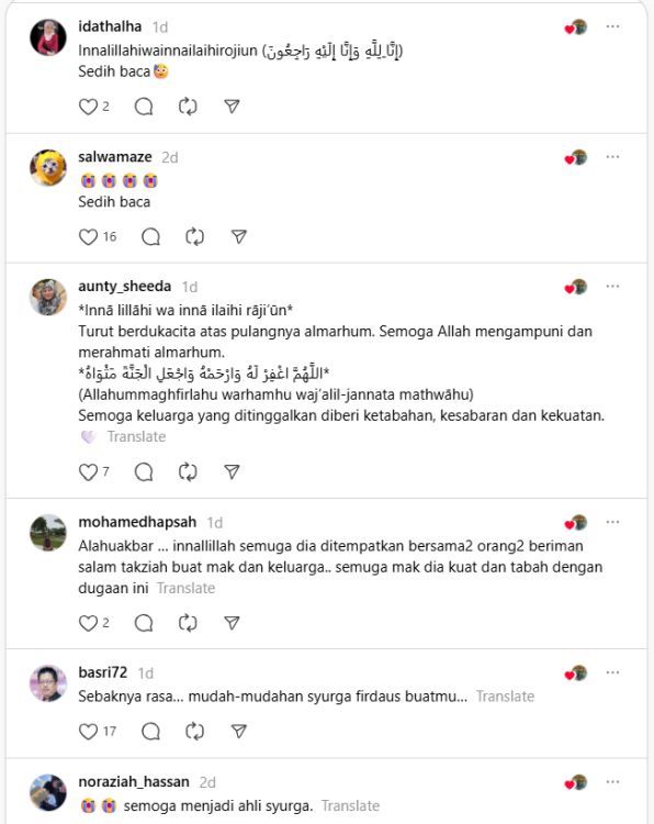 "Salam takziah buat mak dan keluarga. Semoga mak dia kuat dan tabah dengan dugaan ini