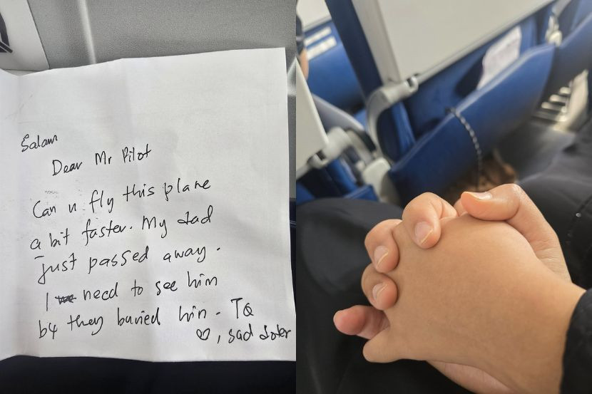 “Juruterbang yang dihormati, bolehkah anda terbangkan kapal terbang ini dengan lebih laju sedikit. Ayah saya baru sahaja meninggal dunia. Saya perlu menemuinya sebelum dia dikebumikan,” demikian nota yang ditulis.