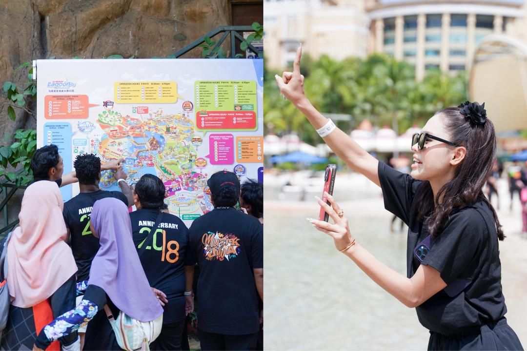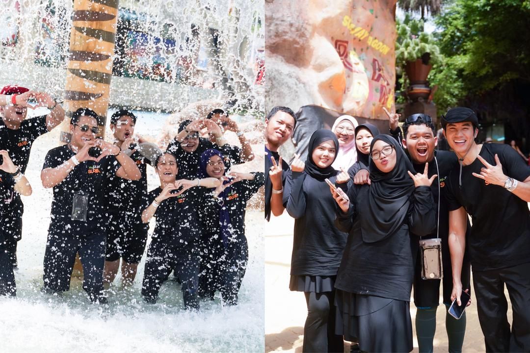 Suasana di taman tema penuh keriangan ini menjadi bertambah gamat sebaik sahaja barisan selebriti popular tanah air tiba untuk melayan serta melakukan aktiviti bersama peminat.