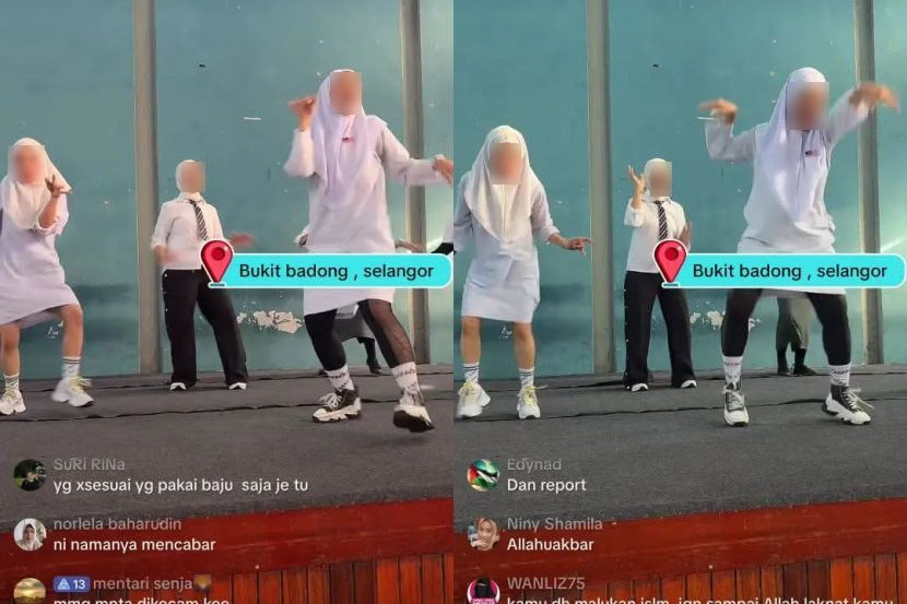 AKSI dua wanita yang melakukan senaman aerobik dengan mengenakan pakaian kurang sopan tular di laman sosial sekali gus mencetuskan kemarahan warga maya.Menerusi perkongsian seorang individu di sebuah laman grup Facebook, kelihatan dua wanita rancak bersenam dengan mengenakan baju kurang putih seperti pakaian seragam sekolah tanpa seluar dan seorang yang lain memakai 'legging' hitam jarang. Apa yang mengejutkan, kedua-duanya mengenakan tudung."Minta Jabatan Agama Islam Selangor (Jais) tolong siasat program senaman aerobik di Bukit Badong. "Bertudung dan seluar pendek. Jelas menghina Islam dan permainkan hukum Islam dengan nyata," tulis individu berkenaan.Aksi senaman yang disiarkan secara langsung (live) di TikTok difahamkan dirakam di Bukit Badong, Selangor, berdasarkan lokasi yang dinyatakan di video berkenaan.Pelayar TikTok yang sempat melihat siaran berkenaan juga mengecam tindakan dua wanita tersebut yang dianggap mempersendakan ajaran Islam.Dalam pada itu, warga maya turut tampil menggesa pihak yang berwajib mengambil tindakan terhadap individu yang berkenaan. "Weh bini siapa ni. Mak siapa ni. Nasihatkanlah sebelum menjadi wabak."Bertudung tapi half naked?"Dah macam perangai ba*i," antara komen netizen.