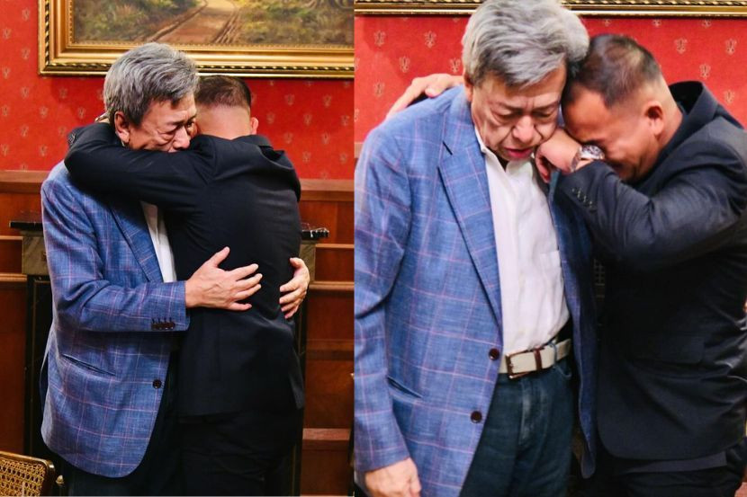 Sultan Sharafuddin memeluk erat Dr Malik yang kelihatan sebak dan terharu dapat menghadap Baginda. -Gambar Selangor Royal Office