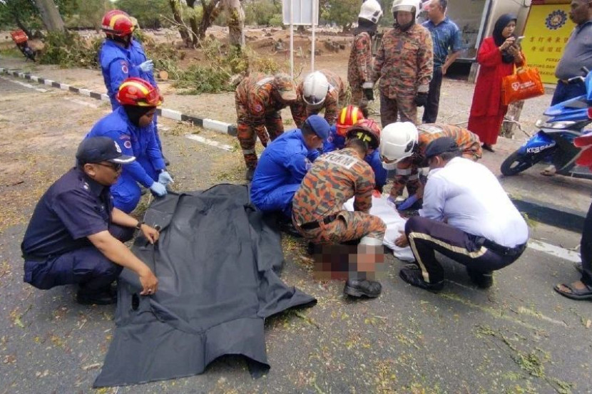 SEORANG lelaki maut manakala seorang lagi cedera selepas motosikal ditunggang mereka dihempap pokok tumbang di Jalan Stadium berhampiran Balai Bomba dan Penyelamat (BBP) Alot Setar, Kedah pada Ahad.Ketua BBP Alor Setar, Timbalan Penguasa Bomba I Ismail Mohd Zain berkata, pihaknya menerima panggilan kecemasan mengenai kejadian itu pada pukul 1.15 tengah hari. Menurut Ismail, sepasukan anggota dari BBP Alor Setar diketuai Pegawai Bomba Kanan (PBK) I Mohd Radzi Abdul Talib dikerahkan ke lokasi sejurus menerima panggilan."Komander Operasi melaporkan kejadian itu membabitkan dua motosikal yang melalui kawasan berkenaan ketika pokok tumbang."Mangsa, Ahmad Farazi Kasim, 51, yang menunggang salah satu motosikal dihempap pokok dan disahkan meninggal dunia di tempat kejadian," katanya.Kata Ismail, mangsa yang meninggal dunia akibat kejadian itu diserahkan kepada pihak polis untuk tindakan lanjut.Jelasnya, Komander Operasi turut memaklumkan kerja pembersihan pokok tumbang di atas jalan raya dilakukan di lokasi kejadian sebelum operasi ditamatkan pada pukul 1.53 tengah hari.Seorang lagi mangsa berusia lingkungan 20-an yang menunggang sebuah lagi motosikal terselamat dan hanya mengalami cedera ringan.