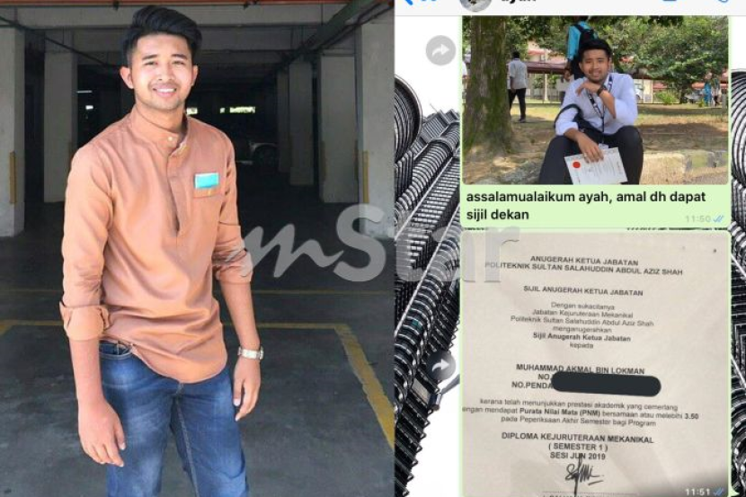 Menerusi perkongsian tangkap layar perbualan yang dimuatnaik di Twitter itu, Akmal memaklumkan bapanya mengenai keputusan peperiksaan semester pertama yang mana dia berjaya memperoleh Sijil Anugerah Ketua Jabatan kerana mendapat pointer melebihi 3.50.